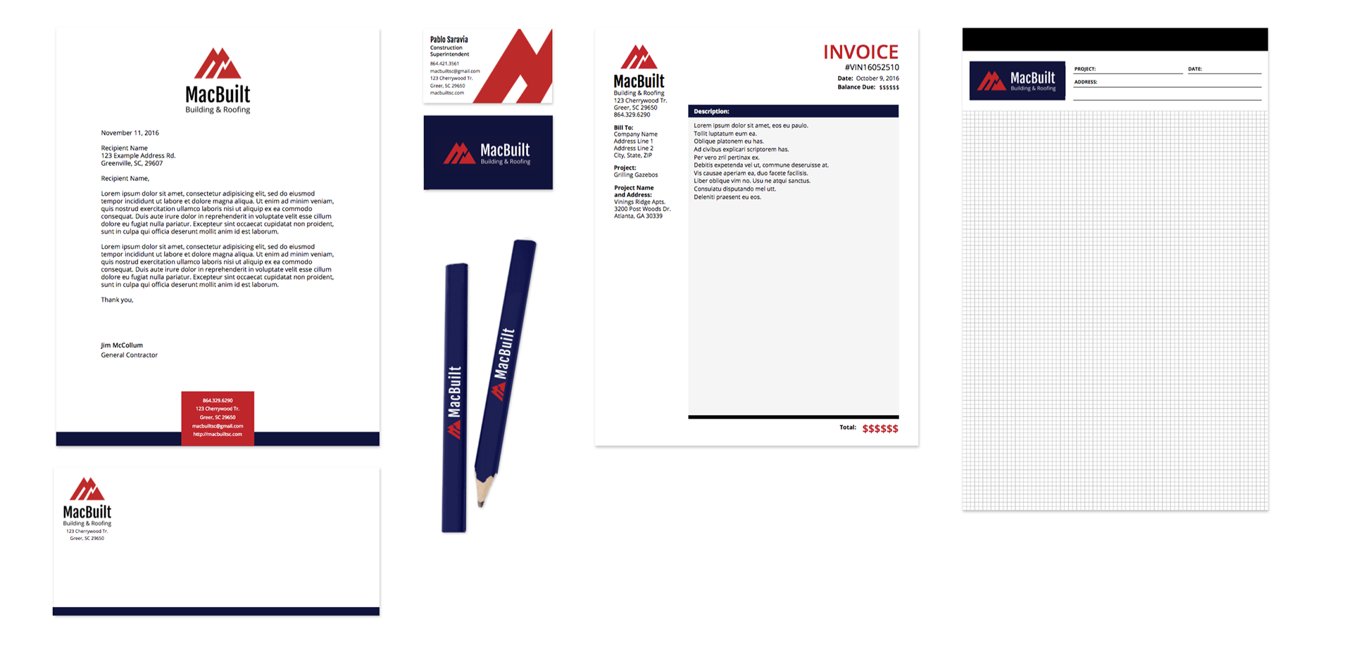 Letterhead, Envelope, Business Card, Pencils, Invoice, Grid Paper